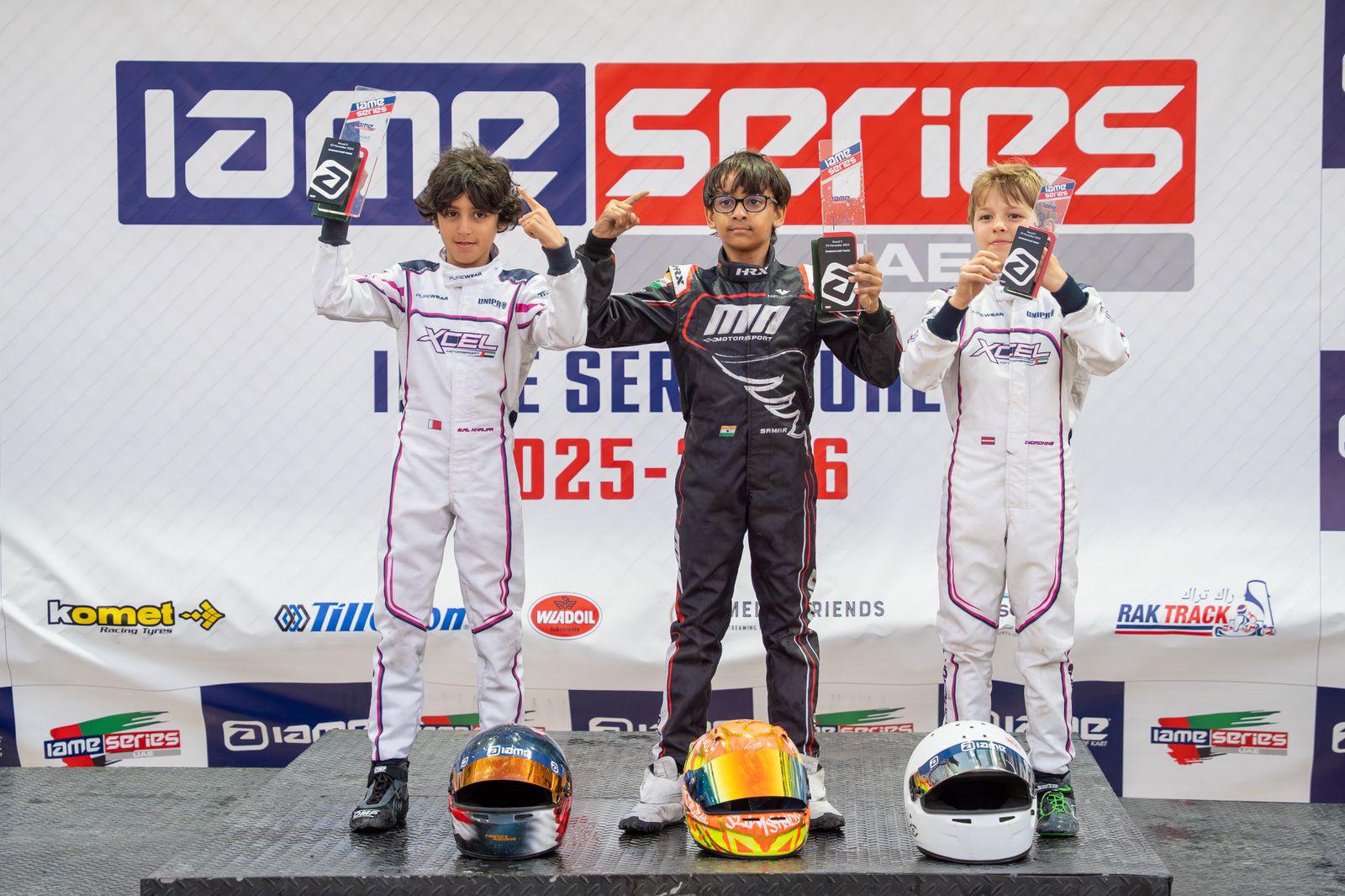 Shaikh Saif bin Hassan Al Khalifa continued his incredible run of form with a double-podium weekend, backing up his 2nd place finish on Saturday in Round 4 with another superb podium on Sunday in Round 5 of the IAME Series UAE at the Sharjah Karting Track for Xcel Motorsport.