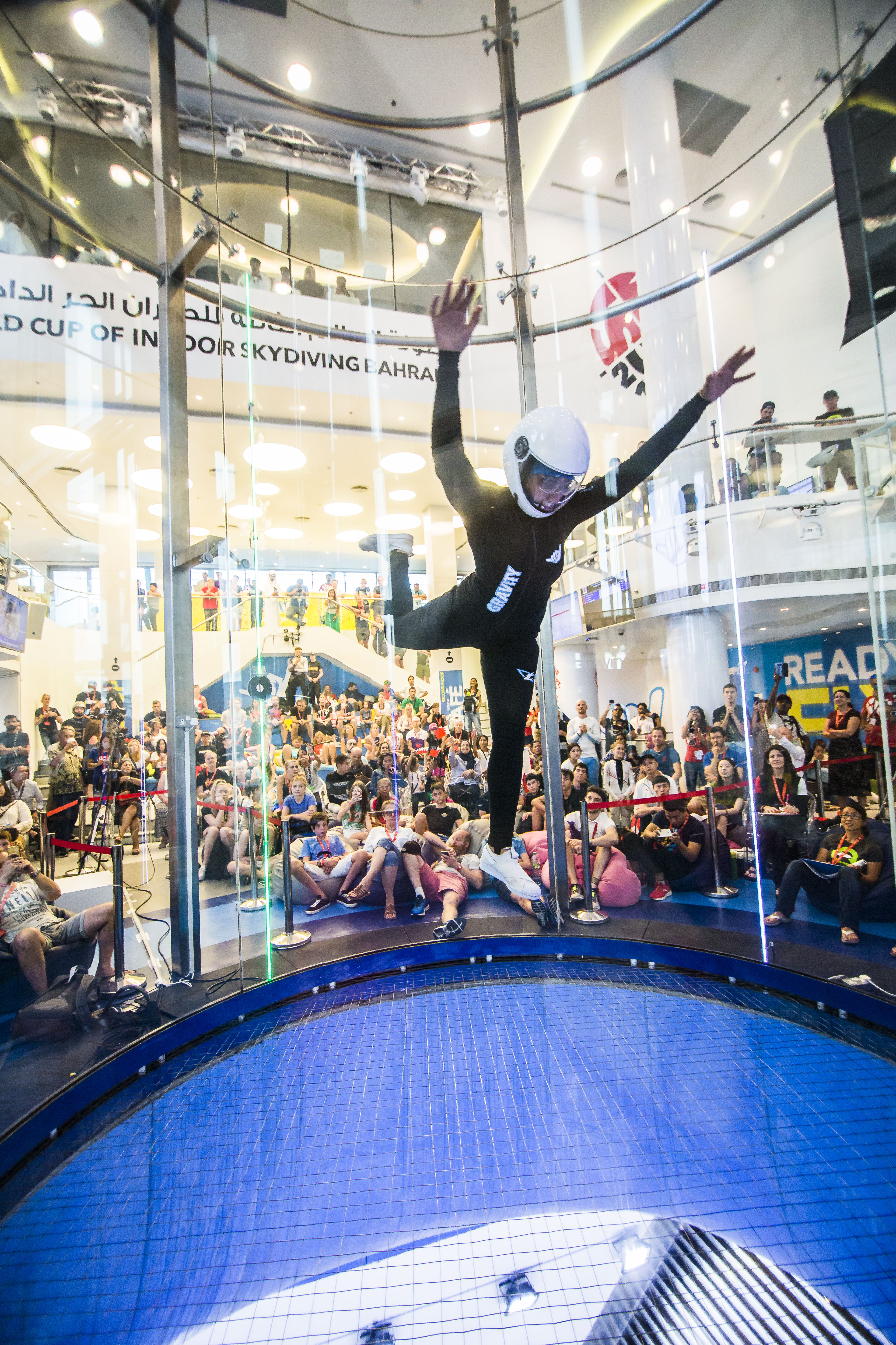 The Third Federation Aeronautique Internationale (FAI) World Cup of Indoor Skydiving, hosted in Bahrain Gravity Indoor Skydiving ended with a proud achievement for the Kingdom of Bahrain. Shaikha Fatima bint Ahmed Al Khalifa won the 1st place at the GCC level and placed 10th amongst international category in freestyle.