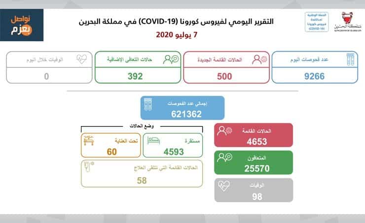 To conclude, Dr. Al Salman, reviewed the health status of active cases, confirming 4,593 stable cases from a total of 4,653 active cases. Currently, 58 COVID-19 cases are receiving treatment, of which 60 are in a critical condition. Dr. Al Salman noted that over 621,000 tests have been conducted to date.